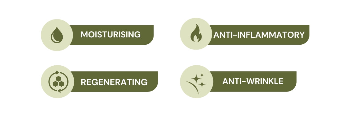 То има силно противостареещо действие и подпомага естествената регенерация на епидермиса. Прави кожата стегната, гладка и сияйна. Маслото от безсмъртниче съдържа специални свойства, които го превръщат в отличен антиоксидант, който има антибактериални, противогъбични и противовъзпалителни свойства.