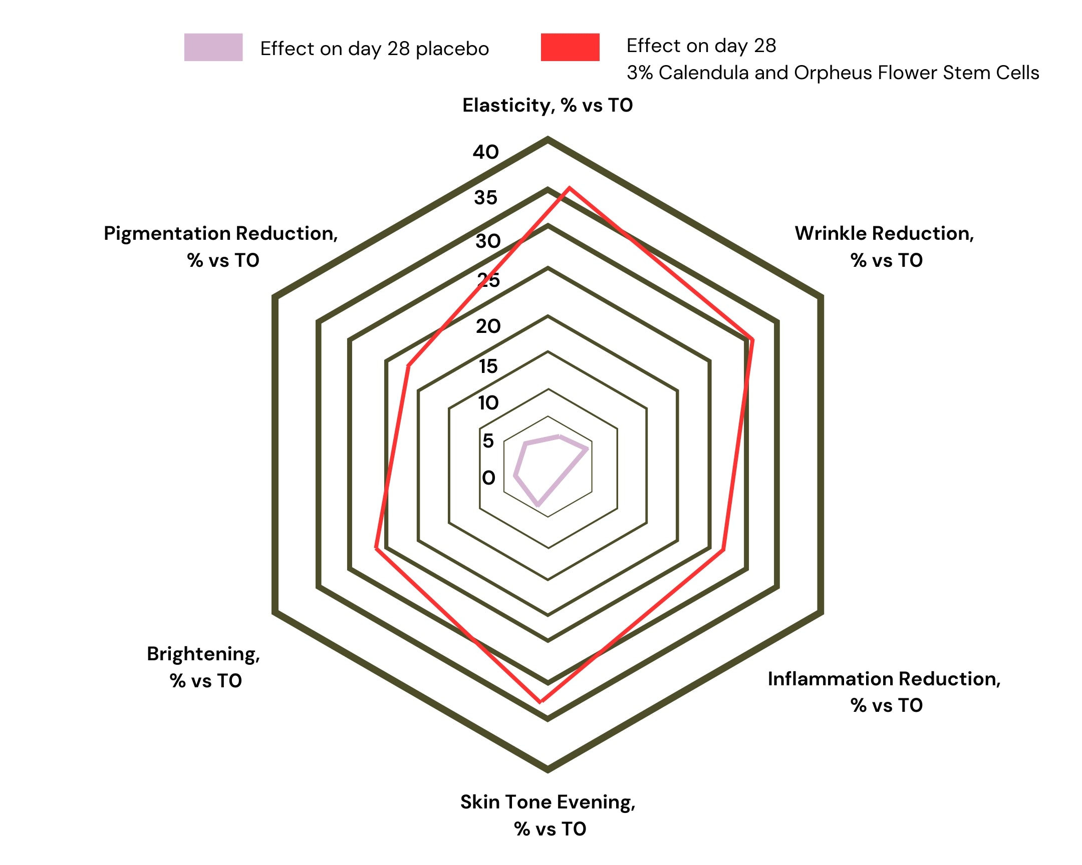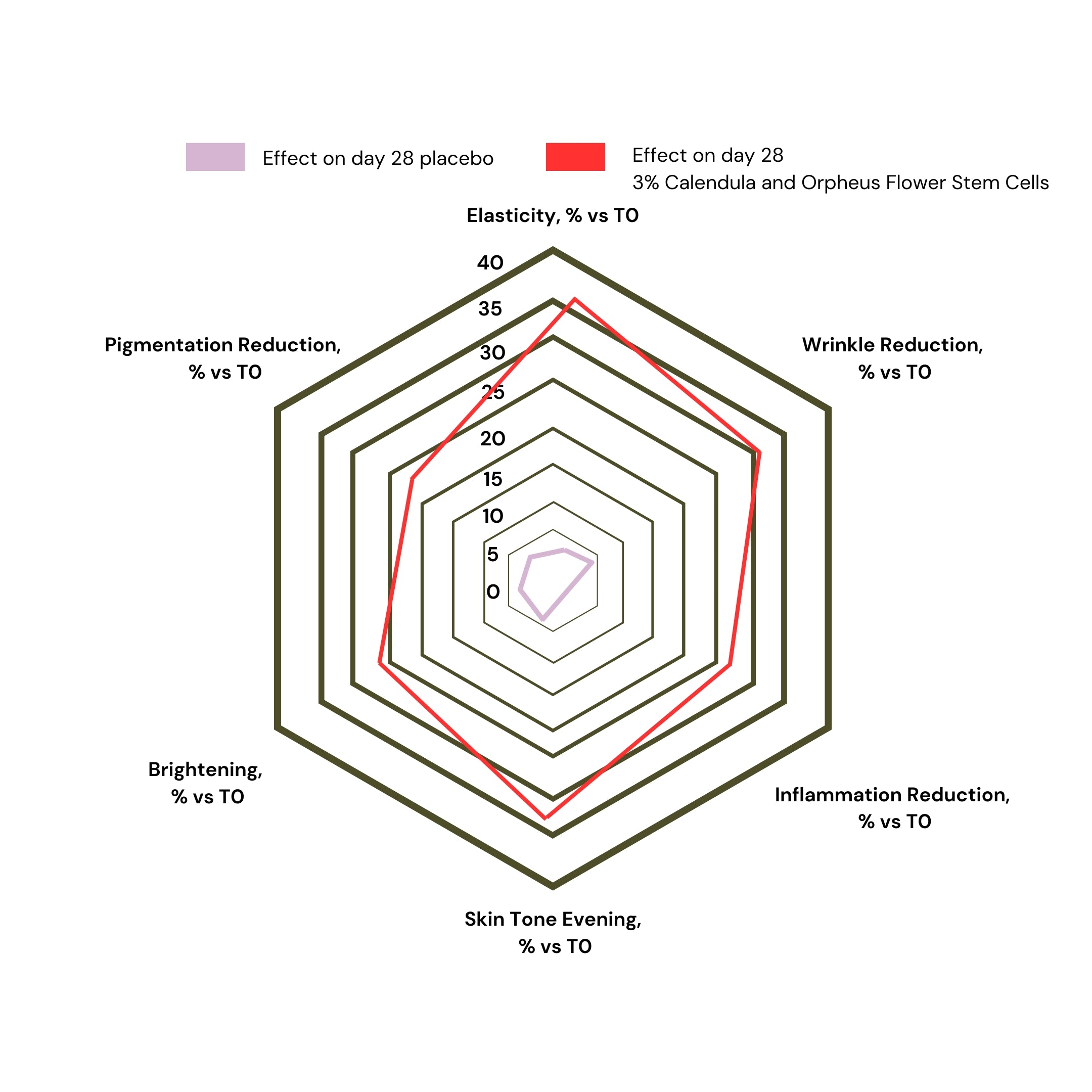 И двете растителни стволови клетки съдържат фенолни киселини, флавоноиди, тритерпени, каротеноиди и др., които са отговорни за укрепване на кожната бариера, повдигане на кожата, работа против бръчки и фини линии, хидратация, противовъзпалително действие, намалявамне на пигментацията и вечерно тонизиране на кожата.